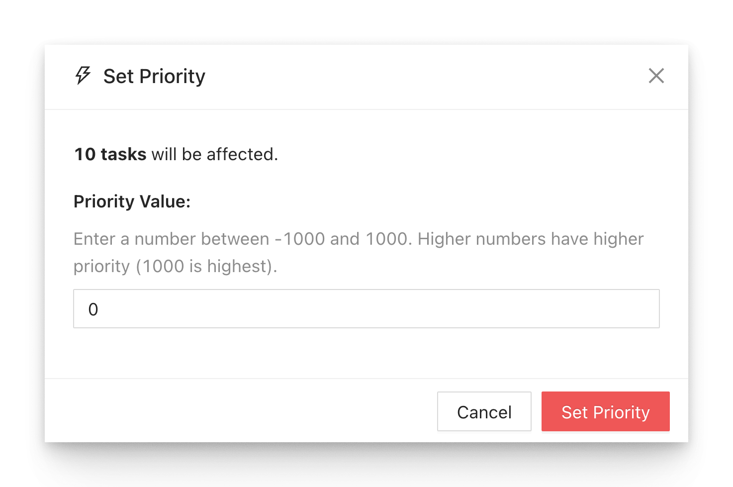 The following dialog will appear. Enter a priority value between -1000 and 1000, and click on *Set Priority*.