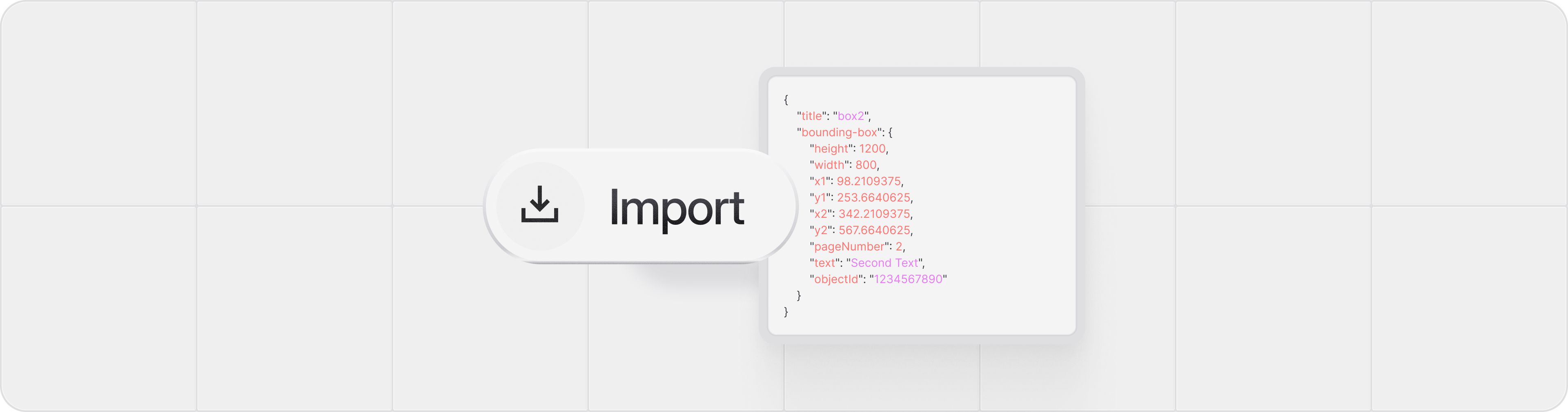 You will see a sample JSON pre-populated with a basic schema of the import file you need, including schema IDs and structure. You may use this sample as structure for your import JSON.