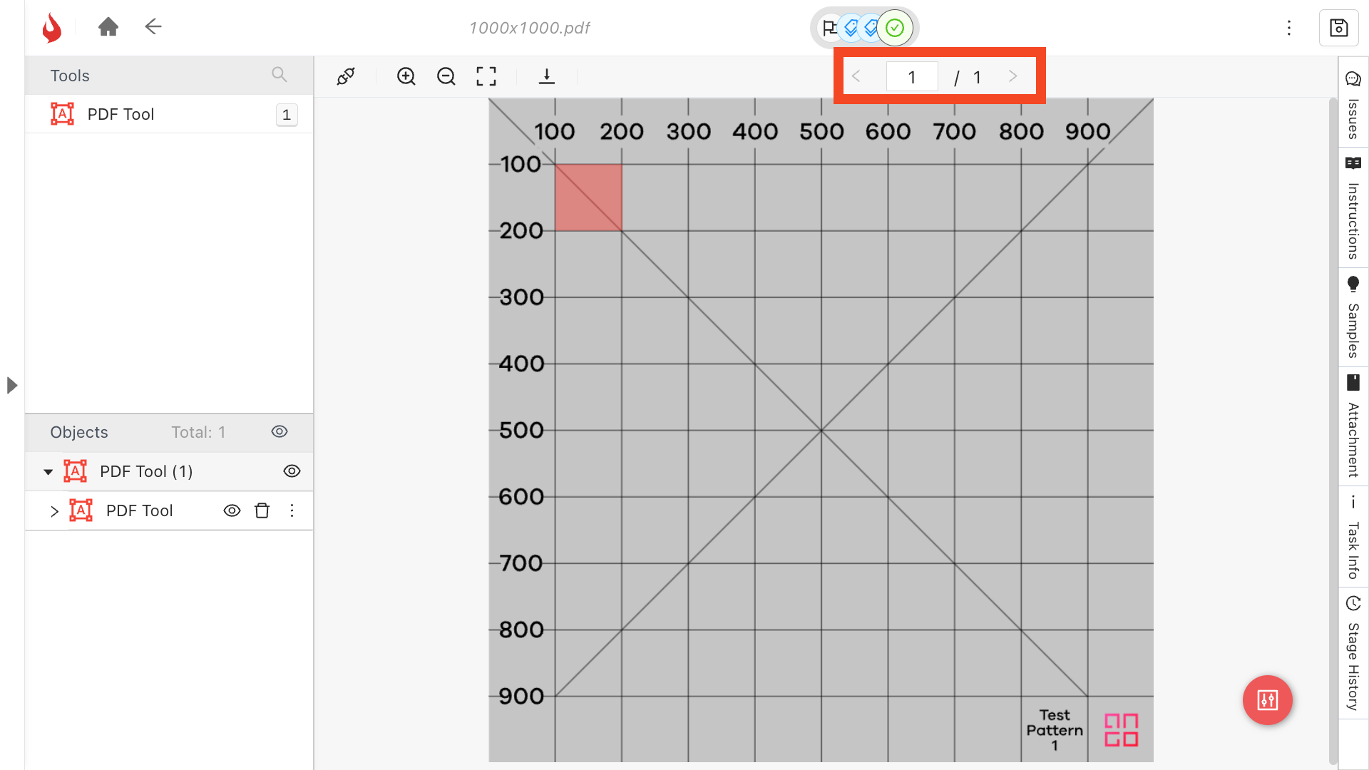 With the *PDF* tool selected, click and drag where you’d like the area to be placed.