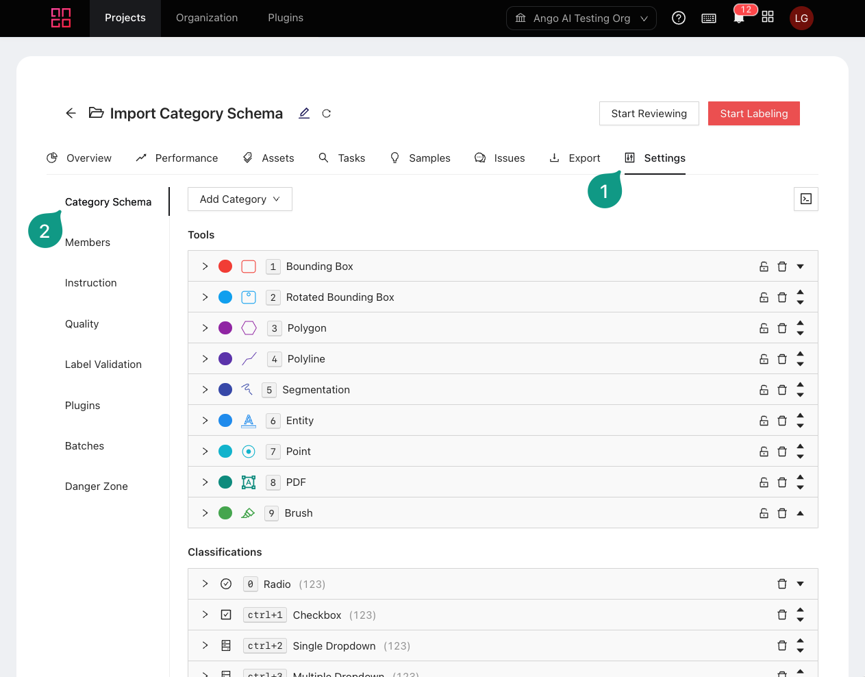You can set and manage the ontology of your project by navigating to your project's settings, then to the *Category Schema* section.