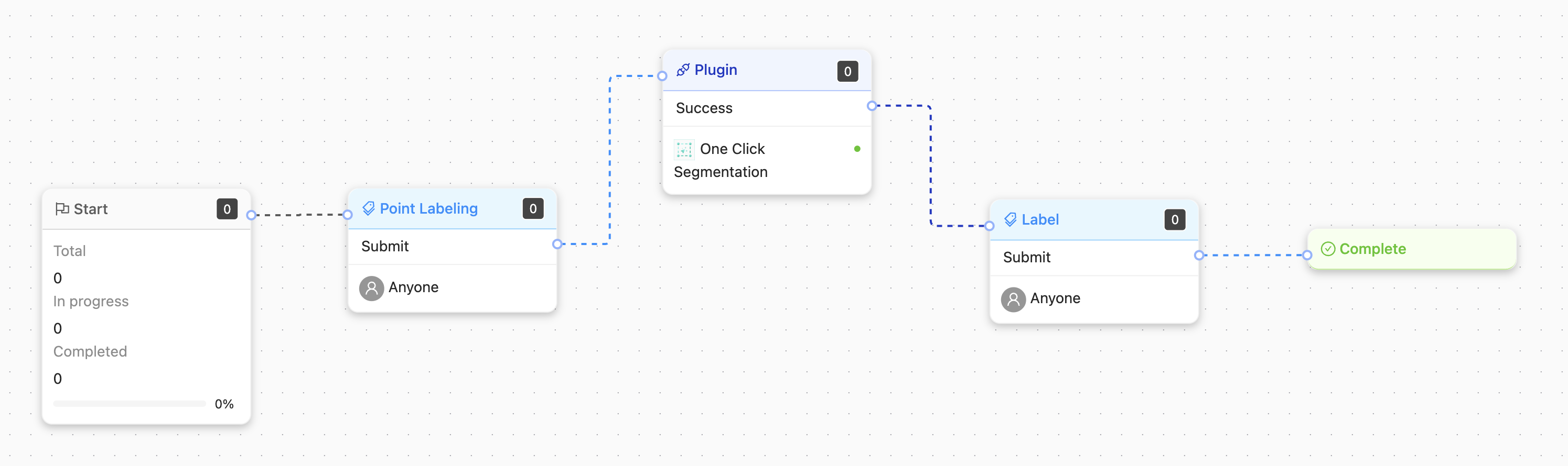 The One Click Segmentation plugin enables automatic segmentation generation using the SAM (Segment Anything Model). It produces high-quality segmentation annotations from a single point or a bounding box prompt, dramatically speeding up the annotation process for image assets.