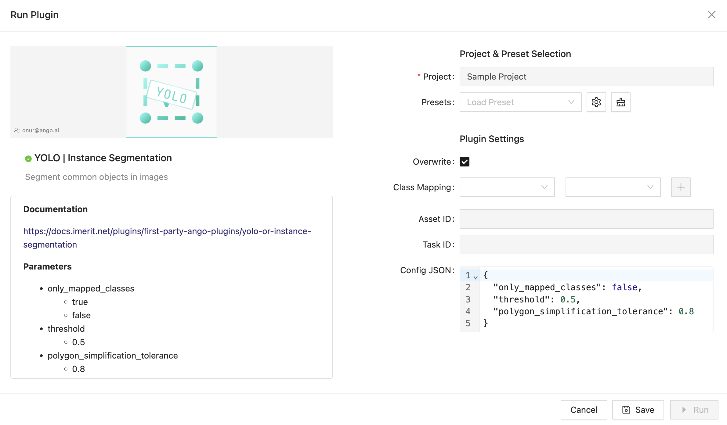 The YOLO Instance Segmentation Plugin allows you to automatically detect and segment instances in images using a pre-trained YOLO (You Only Look Once) model. It identifies and localizes objects by drawing polygon around detected instances and assigning them class labels with confidence scores.