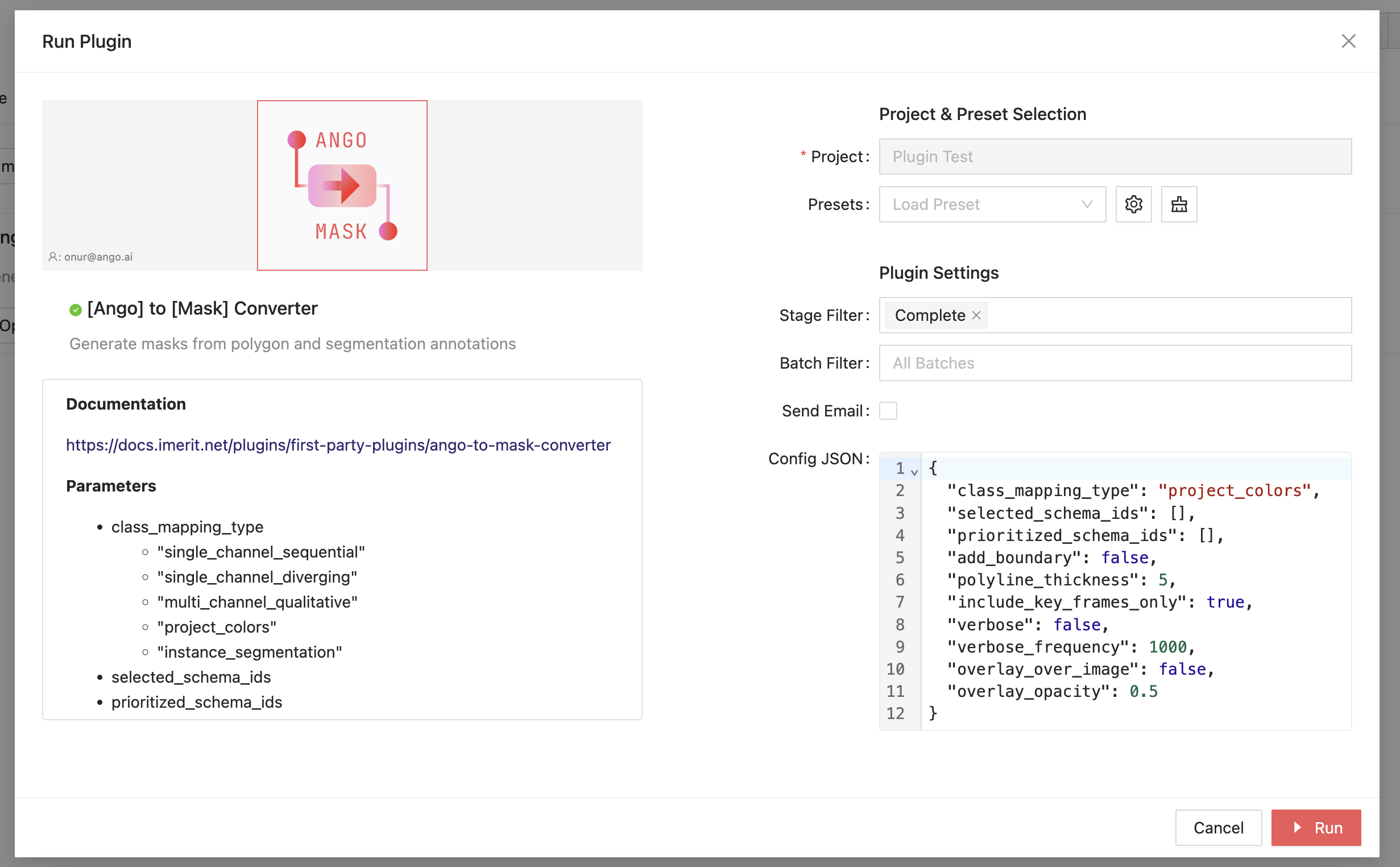 5. Click the Run button to run the plugin.